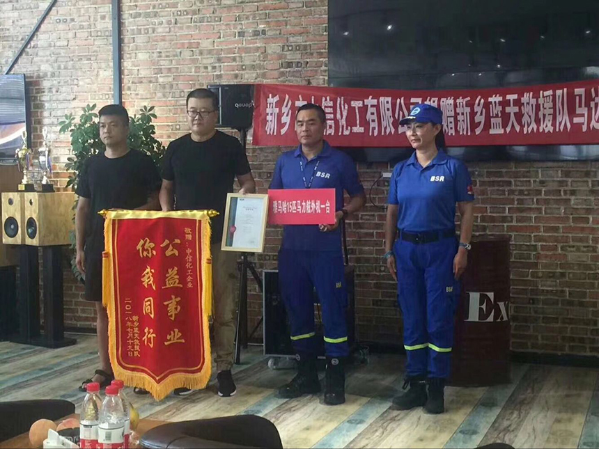 感恩生命,感恩生命中有您。中信化工一直心系社會,堅持社會公益,此次中信領導層來到新鄉藍天救援隊,向救援隊捐贈雅馬哈15匹馬力舷外機,幫助救援隊更好的水上救援。